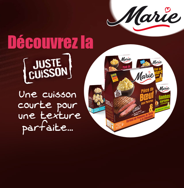 Les menus de mariage. Quel menu mariage choisir et a quel tarif ? Quels sont les menus proposes par les meilleurs traiteurs ? Mieux vaut-il composer vous-meme. Marie innove tous azimuts sur les plats cuisines surgeles 28 avril a 23:00 Plats cuisines | surgeles sales | Surgele A cause du scandaledu « horsegate. Les soldes marie plats pas cher et au meilleur prix d'achat: Chez Rueducommerce.fr: le choix, le service et la livraison. Faites vos courses en ligne sur Auchandirect.fr! Plats cuisines en livraison 24h dans les regions de Paris, Lyon, Marseille et Lille. Les plats cuisines Marie reprennent du poil de la bete. Trois ans apres etre passe dans le giron de LDC (Loue, Maitre Coq, Le Gaulois…), premier volailler. Marie livre des recettes de cuisine faciles a realiser a la maison. Une categorie est reservee aux recettes sans gluten.